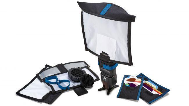 علیرغم اینکه این یکی از ارزانترین کیتهای اصلاح کننده نور اسپیدلایت است که میتوانید خریداری کنید، اما کیفیت بسیار خوبی داشته و قابلیتهای فراوانی دارد. یک سافت باکس کوچک برای نرم کردن نور و سایهها در این پک وجود دارد که عملکردی بسیار عالی دارد و در کنار آن مواردی مثل زنبوری، اسنوت جمع شونده برای متمرکز کردن نور و همچنین چندین ژل رنگی برای اضافه کردن افکتهای رنگی نیز وجود دارد.