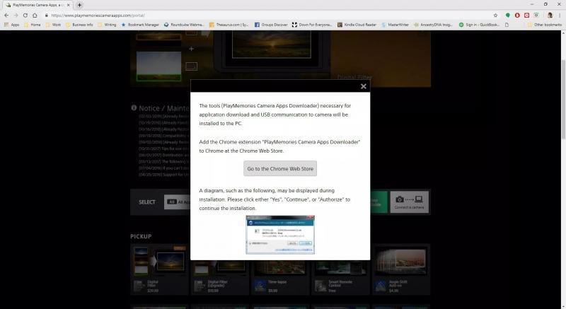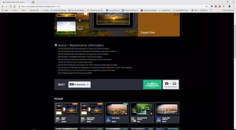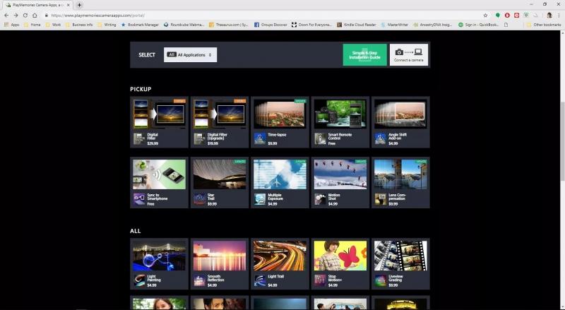پس از اتمام نصب، باید به پرتال PlayMemories بازگردید. بسته به مدل دوربین سونی شما، باید لیستی از برنامهها و فیلترها را برای نصب مشاهده کنید.