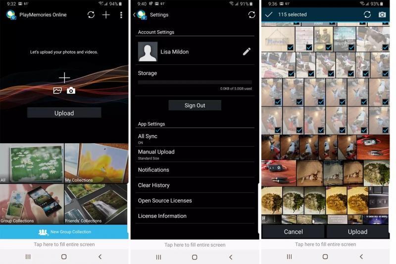 نسخه Android به سادگی با عنوان PlayMemories Online نامگذاری شده است و به طور یکسان با نسخه IOS کار میکند. فقط کافیست بر روی عکسهایی که میخواهید بارگذاری کنید، ضربه بزنید؛ سپس میتوانید برای دیدن مجموعه عکس و فیلم خود به وب سایت PlayMemories Online در هر دیوایسی بروید که تنها نیاز آن اتصال به اینترنت است.