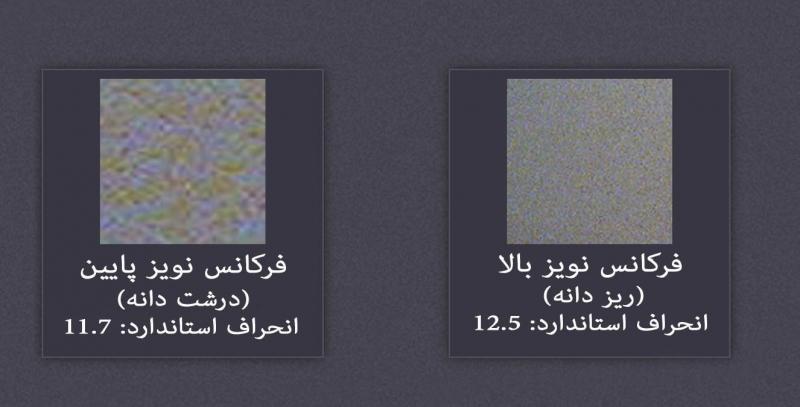 اگر در دو نمونه بالا با اتکا به مقدار {Magnitude} ، نوسانات مقایشه میشدند ( همانطور که در بازبینیهای بیشتر دوربینها وجود دارد )، اینگونه به نظر میآمد که نمونه سمت راست دارای نویز بیشتری است. پس از بررسی بصری، در واقع نمونهی سمت راست دارای نویز کمتری از نمونه سمت چپ است. این مسئله کاملا ناشی از فرکانس فضایی هر یک از نمونهها است.