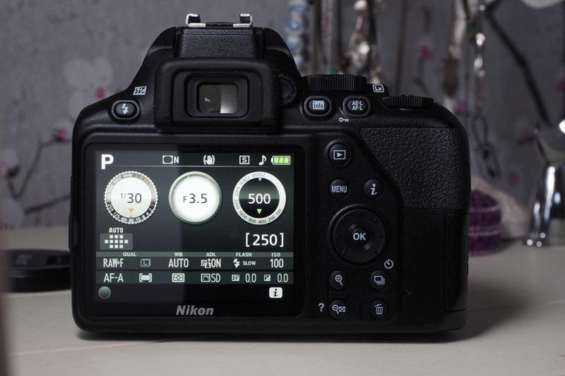 - نیکون D3500 : نمایشگر 3 اینچی غیر لمسی ثابت از نوع LCD با 921.000 نقطه، ویزور با ضریب بزرگنمایی 0.85x و پوشش 95 درصدی