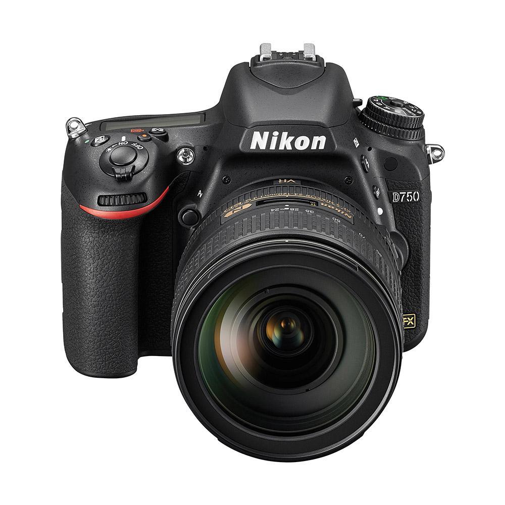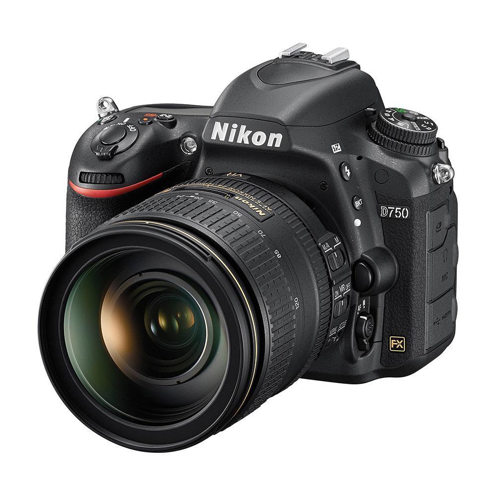 نیکون D750 سومین دوربین DSLR فول فریم این شرکت است که در سال ۲۰۱۴ معرفی شد. جایگاه این دوربین نیز، بین D610 ارزان قیمت و D810 تا دندان مسلح و البته گران قیمت است. این دوربین به یک سنسور ۲۴ مگاپیکسلی از نوع CMOS با ابعاد ۳۵٫۹x24 میلیمتر مجهز است. یک نمایشگر ۳٫۲ اینچی قابل چرخش به صورت عمودی هم با دقت ۱٫۲۲۹ میلیون نقطه از نوع RGBW وظیفه نمایش تصاویر را بر عهده دارد. این دوربین توانایی فیلمبرداری Full HD را با سرعت ۶۰ فریم بر ثانیه داراست و قادر است به طور همزمان کار ضبط تصاویر ویدیویی را انجام دهد و تصویر را از خروجی HDMI صادر کند. این دوربین به قابلیت WiFi نیز مجهز شده است تا به دستگاههای هوشمند متصل شود. شما با کمک اپلیکیشنهای مخصوصی که برای این دوربین در نظر گرفته شده است قادرید به برخی از قابلیتهای این دوربین دسترسی داشته باشید. همچنین امکان به اشتراکگذاری آسان فایل نیز در شبکههای اجتماعی به این وسیله برایتان فراهم میشود. جالب است که بدانید D750 حتی نسبت به D810 هم دارای برتریهایی است. سرعت عکاسی پیاپی ۶٫۵ فریم بر ثانیه در مقابل ۵ فریم بر ثانیه در D810 و سیستم فوکوس ۵۱ نقطهای بهبود یافته در کنار نمایشگر LCD که حالا قابلیت چرخش به صورت عمودی هم دارد، همه از برتریهای D750 نسبت به D810 هستند. لنز ارائه شده بر روی این کیت، مدل Nikon AF-S Nikkor 24-120mm f/4G ED VR است.