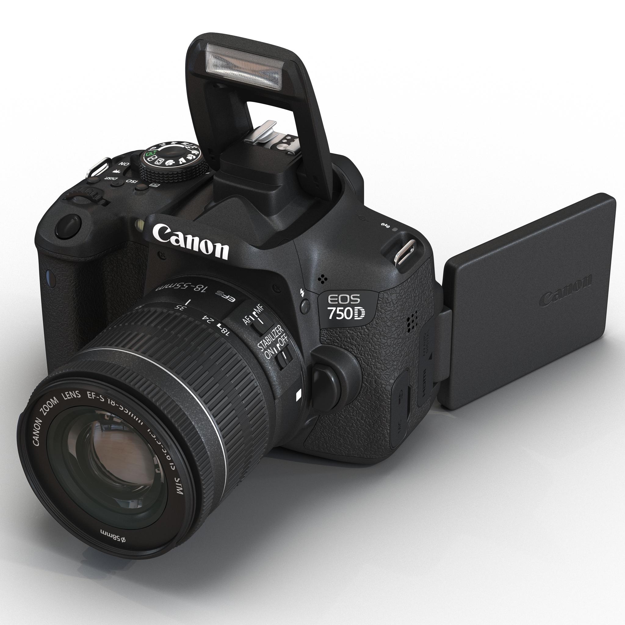 دوربین عکاسی کانن 750D با 18-55 با رنگ مشکی و در ابعاد 132×101×78 میلیمتر با وزن 555 گرم به بازار عرضه شده است. این محصول از یک صفحه نمایش لمسی و کاملاً متحرک بهره مند بوده و بسیار مناسب عکاسی و فیلمبرداری در زوایای مختلف است. صفحه نمایش دوربین کانن 750D از نوع TFT-LCD در اندازه 3 اینچ است.