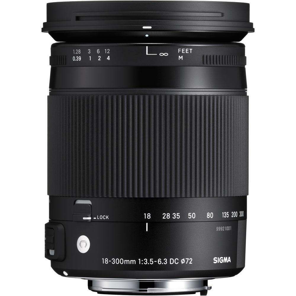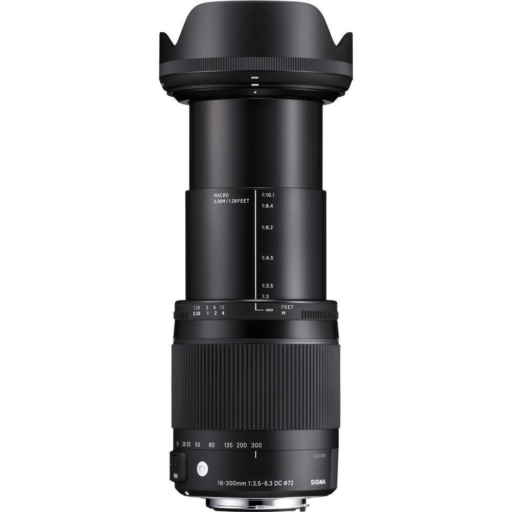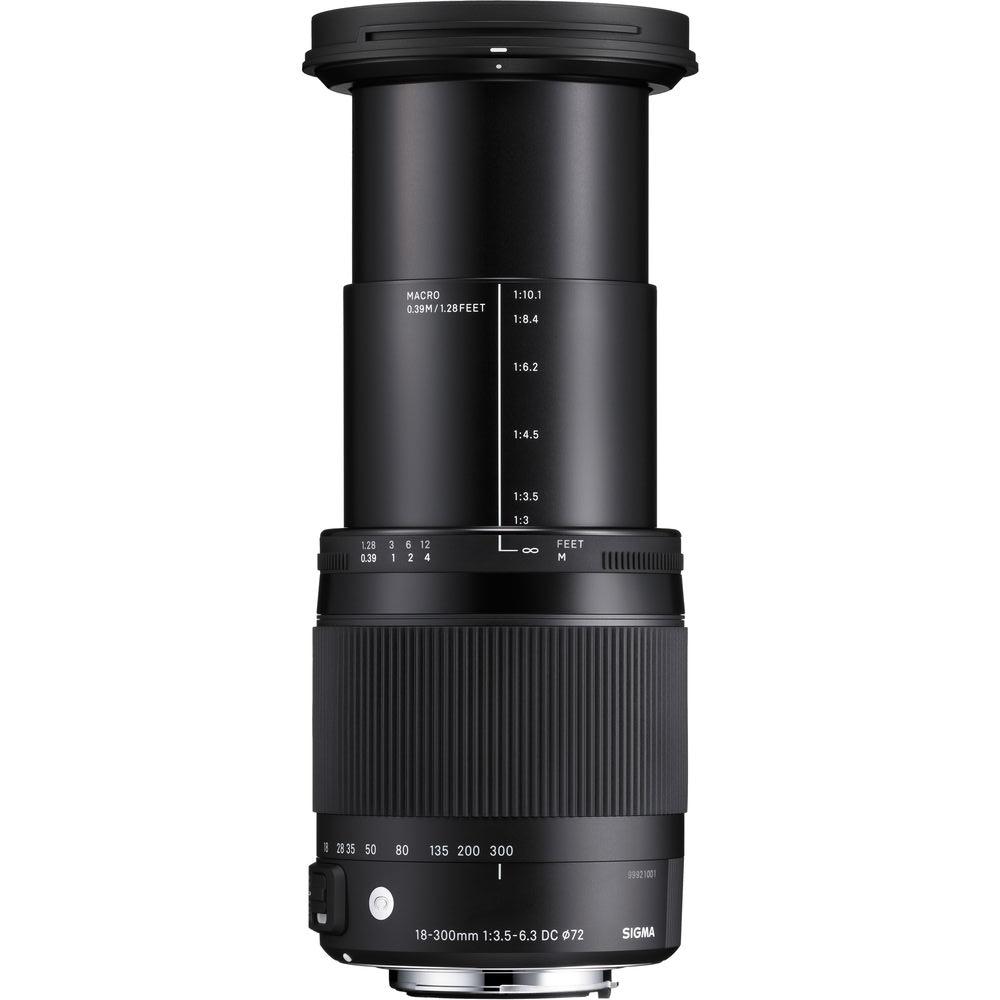 لنز سیگما Sigma 18-300mm با دیافراگم f/3.5-6.3، یک لنز همه کاره با زوم گسترده مخصوص دوربین های فول فریم DSLR با حسگر تصویر APS-C است. این لنز دارای محدوده فوکوس، معادل ۲۹ تا ۴۸۰ میلی متر است و با محدوده زوم گسترده ای که ارائه می کند مناسب استفاده های گوناگون در هر موقعیتی می شود. این لنز سیگما از دیافراگم سریع ۳٫۵ تا حداکثر ۶٫۳ بهره می برد که موجب کنترل بهتر بر وضعیت فوکوس مورد نظر شما و کمک در شرایط کم نور می شود. همچنین لرزشگیر تصویر به کار رفته در این لنز سیگما ۳۰۰-۱۸ میلی متر، با ۴مرحله کاهش در روند لرزش های دوربین، به عملکرد بهتر شما در نور کم کمک زیادی می کند؛ که این موضوع، این لنز را برای عکسبرداری ماکرو و تله فوتو ایده آل می کند. موتور اتوفوکوس هایپرسونیک(HSM) در این لنز، فوکوس خودکاری بی صدا، روان و سریعی را ارائه می کند که برای برنامه های ویدیویی شما فوق العاده است. با تعبیه عدسی های دو پهلوی آسفریکال امکان داشتن چنین زوم گسترده ای با وجود ساختمانی جمع و جور و سبک ایجاد شده است، ضمنا یک عدسی مخصوص (SLD) و ۴ عدسی (FLD) موجب اصلاح انحرافات تصاویر و یک پوشش چندلایه ای اثر شراره(Flare) و مه آلودگی(Ghosting) را کاهش می دهد که در نهایت باعث افزایش کنتراست و وضوح تصاویر می گردد، حتی در شرایطی که نور پشت زمینه داشته باشیم. لنز Sigma 18-300mm f/3.5-6.3 از نمونه های جدید لنز سیگما محسوب می شود. به منظور بروزرسانی سخت افزاری برای هماهنگی بهتر و جزئیات دقیق تر برای مناسب ترین آیتم های مخصوص به شما، این لنز با Sigma USB Duck سازگاری دارد. این Duck به شما امکان تمامی تغییرات مورد نظرتان در نرم افزار لنز نظیر سرعت اتوفوکوس یا محدودیت های فوکوس را خواهد داد. این لنز تله واید زیگما از دیافراگم ۷ تیغه ای جهت روان سازی فوکوس عدسی ها استفاده کرده است و در کل دارای ۱۷ عدسی در ۱۳ گروه است.