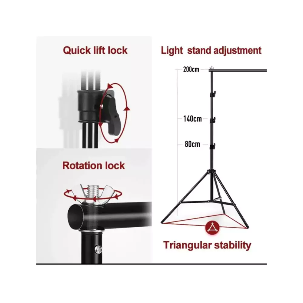 ارتفاع قابل تنظیم: حداکثر ارتفاع سه پایهها 200 سانتیمتر است. این امکان را به شما میدهد تا فونها را در ارتفاع مطلوب برای عکاسی قرار دهید.