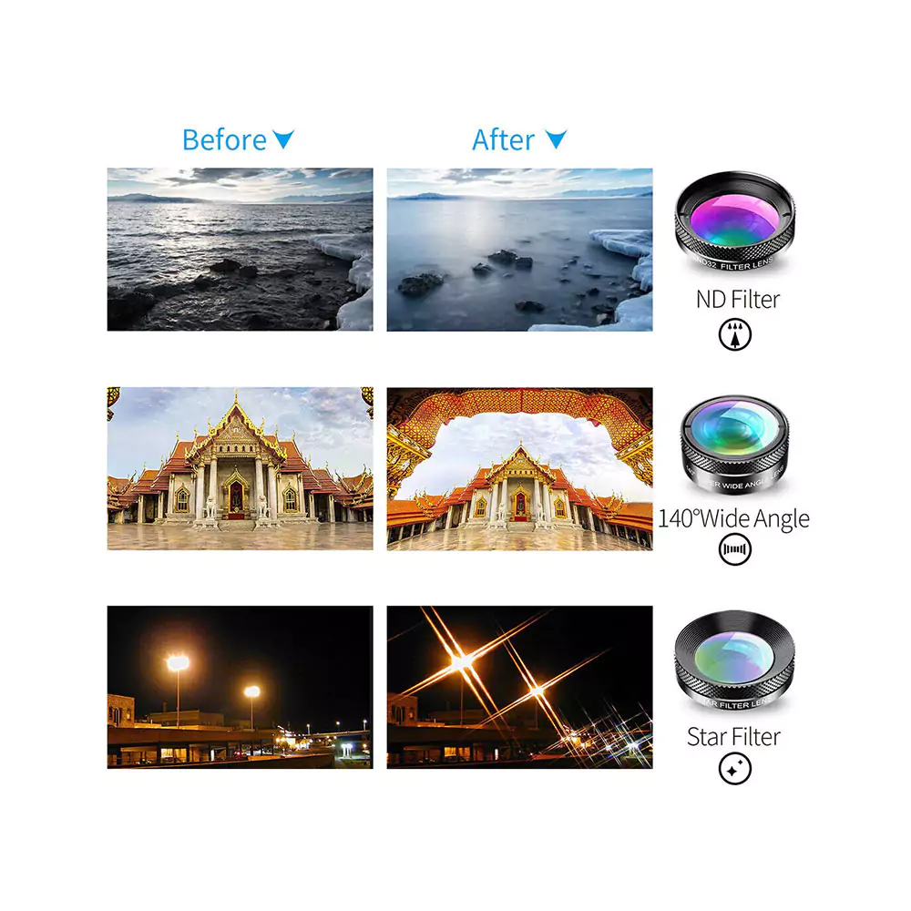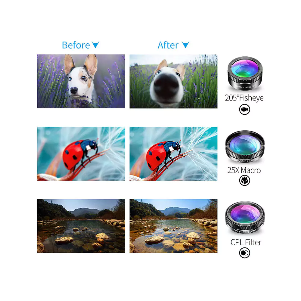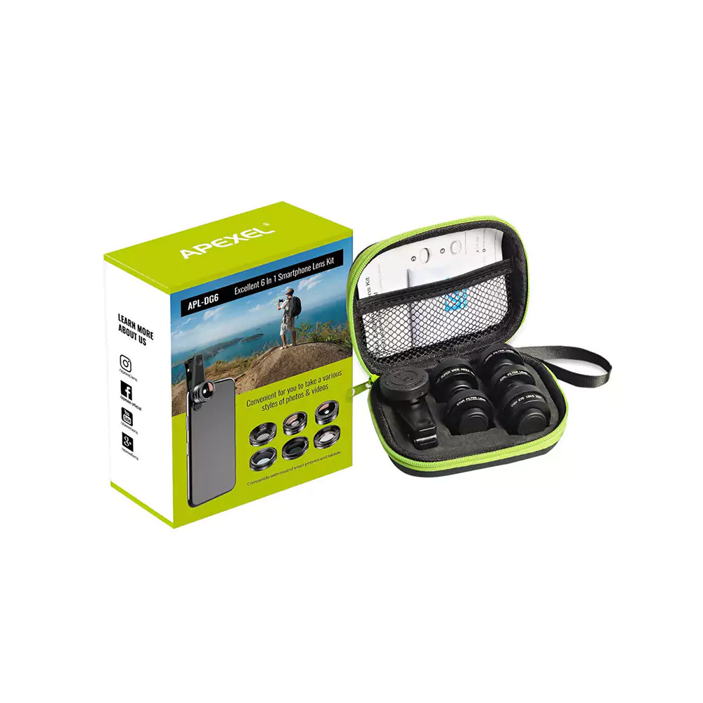 کیت لنز موبایل Apexel APL-DG6 شامل ۶ لنز مختلف است: