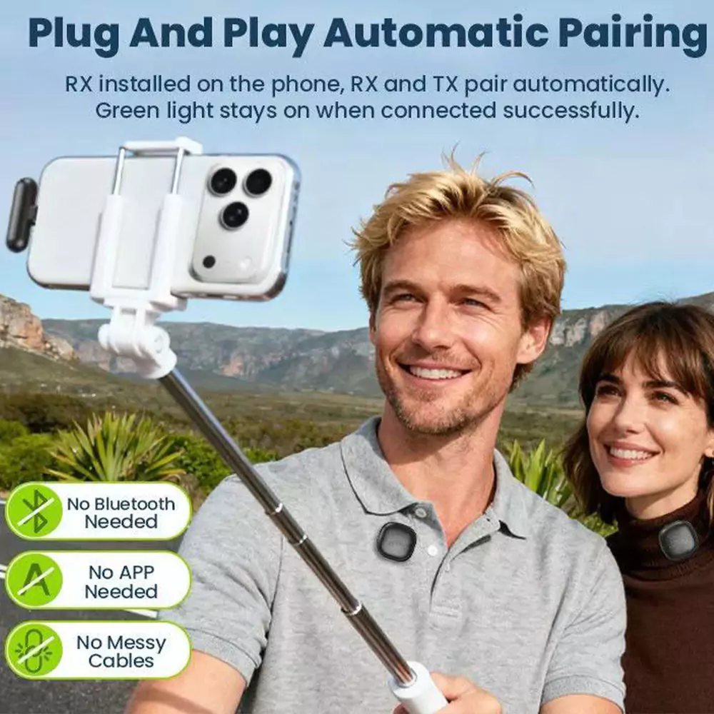 در قلب Ararox Ai Mic یک سیستم بیسیم قدرتمند با فرکانس 2400 تا 2480 مگاهرتز قرار دارد که امکان انتقال سیگنال با کیفیت و بدون نویز را فراهم میکند. برد انتقال این میکروفون تا ۵۰ متر در فضای باز و بدون مانع است؛ این یعنی حتی اگر در فاصلهای دور از گوشی قرار بگیرید، صدا با وضوح بالا و بدون قطعی منتقل میشود. فناوری Plug & Play باعث میشود بدون نیاز به هیچ اپلیکیشن یا اتصال بلوتوثی، فرستنده و گیرنده به صورت خودکار جفت شوند. کافی است گیرنده را به گوشی متصل کنید و چراغ سبز را ببینید؛ حالا میتوانید بدون معطلی ضبط را آغاز کنید.