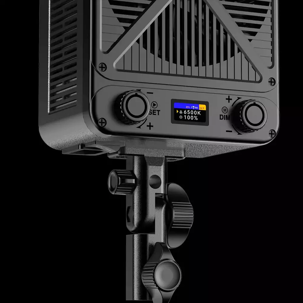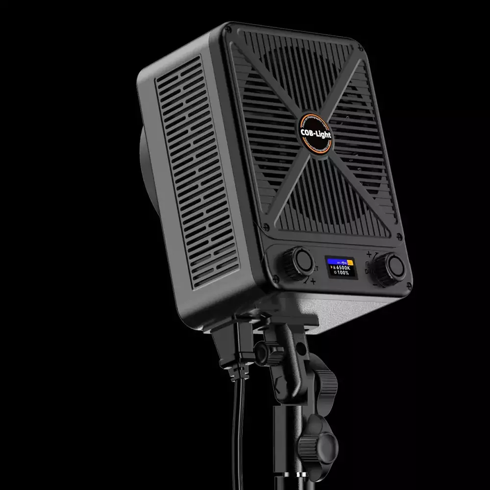 نمایشگر دیجیتال و فن داخلی برای خنکسازی مداوم، استفاده از این نور را در پروژههای طولانیمدت ایمن و راحت کرده است. قابلیت تنظیم روشنایی از ۰ تا ۱۰۰ درصد، آزادی عمل فوقالعادهای به کاربر میدهد. این نور همچنین با انواع شکلدهندههای نور با مانت بوئنز کاملاً سازگار است.