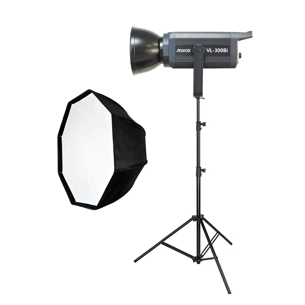 هسته اصلی این کیت، ویدیولایت آراروکس VL300 BI است که یک نور پیوسته LED با توان 300 وات محسوب میشود. این ویدیولایت دارای قابلیت تنظیم دمای رنگ از 2800 تا 6800 کلوین است، که امکان ایجاد حس گرمی یا سردی در نور را بر اساس نیاز پروژه فراهم میکند. شاخص CRI/TLCI بالاتر از 95 تضمین میکند که رنگها دقیق و طبیعی ثبت شوند. همچنین با 9 افکت نوری (FX Mode) و نمایشگر دیجیتال، برای پروژههای ویدئویی نیز گزینهای بسیار مناسب است.