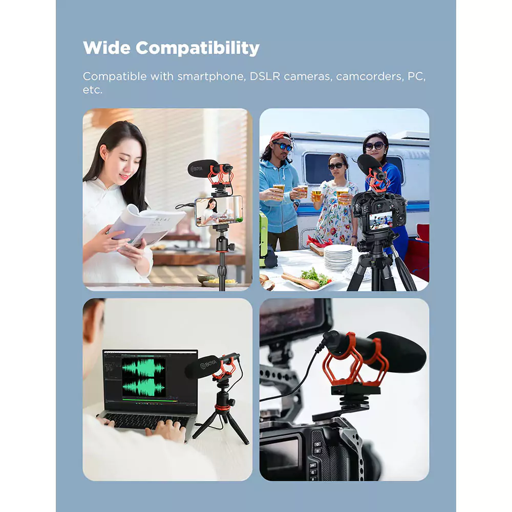 طراحی Plug-and-Play: یکی از ویژگیهای برجسته میکروفون BOYA BY-BM2040، طراحی Plug-and-Play آن است که اجازه میدهد بدون نیاز به نصب نرمافزار یا تنظیمات پیچیده، به راحتی از میکروفون استفاده کنید. کافی است میکروفون را به دستگاه متصل کرده و بلافاصله شروع به ضبط صدا کنید.
