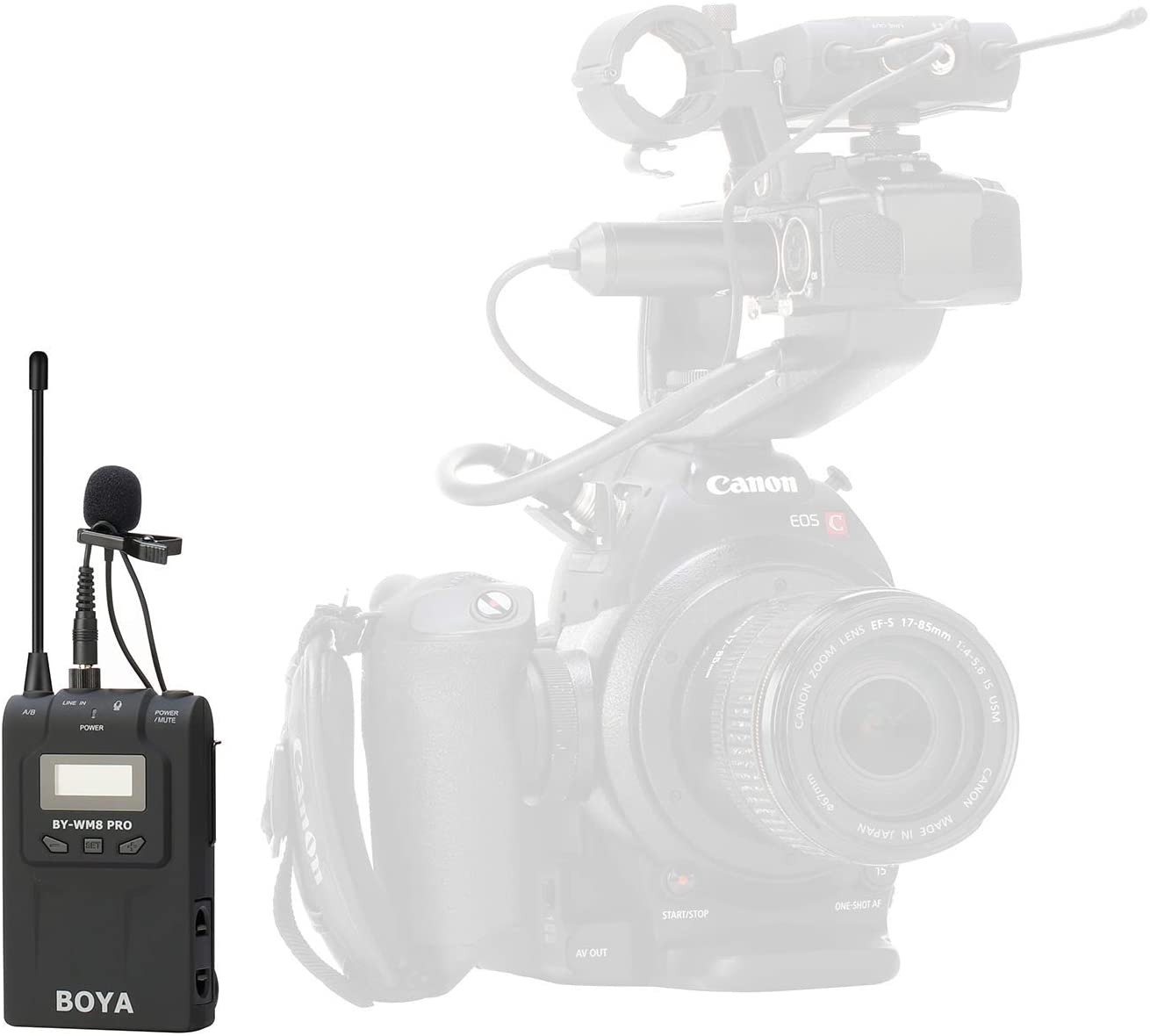 فرستنده میکروفون بویا مدل By-TX8 PRO یک فرستنده بی سیم می باشد که می توانید با مجموعه میکروفون بی سیم BY-WM8 Pro-K1 از آن استفاده کنید. فرستنده میکروفون بویا By-TX8 PRO مجموعه یک ست است و برای مصاحبه بسیار مناسب می باشد، همچنین برای ENG / EFP، تولید فیلم و موارد دیگر ایده آل است. این فرستنده (مجهز به نمایشگر LCD) به صورت استاندارد با میکروفون lavalier جهت دار چند جهته ارائه می شود. یکی از ویژگی های فرستنده میکروفون بویا By-TX8 PRO میزان تحریف کم آن است که منجر به کیفیت صدای بالاتر می شود. علاوه بر این، فرستنده بویا جمع و جور و سبک می باشد. فرستنده از دو باتری AA استفاده می کند (که شامل داخل پک نمی شود)، به شما امکان می دهد تا 6 ساعت از آن استفاده کنید. در صورت عدم وجود هیچ مانعی در این فاصله، فرستنده 100 متر جوابگو خواهد بود.