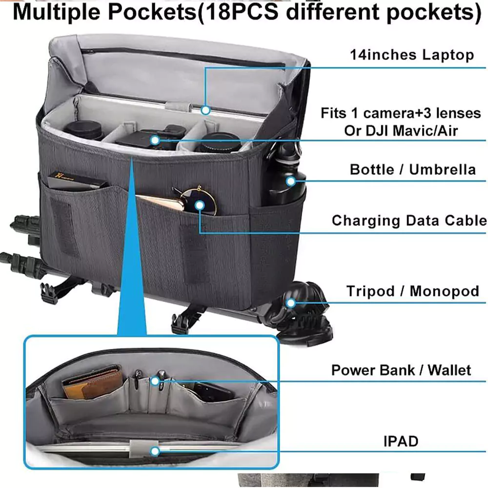 کیف کادن Caden K11 Bag برای افرادی که نیاز به حمل تجهیزات مختلف دارند، از جمله دوربین، لنز، سهپایه، لپتاپ، DJI Phantom Drone و سایر لوازم عکاسی و فیلمبرداری، بسیار مناسب است.