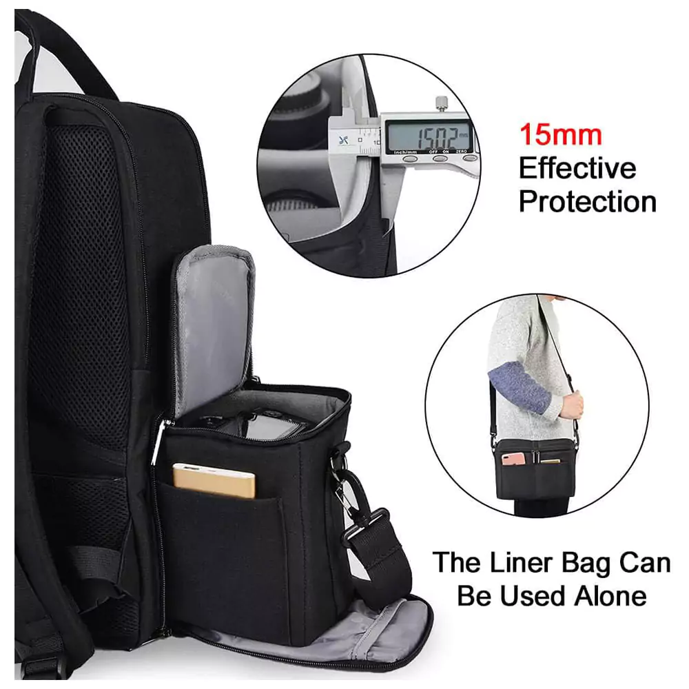 علاوه بر این، کیف داخلی بهطور جداگانه قابل استفاده است و میتوان آن را به عنوان یک کیف دوربین کوچک استفاده کرد. این ویژگی، کاربری کیف را بیشتر کرده و به کاربران امکان میدهد تا فقط کیف داخلی را در مواقع خاص همراه خود داشته باشند.