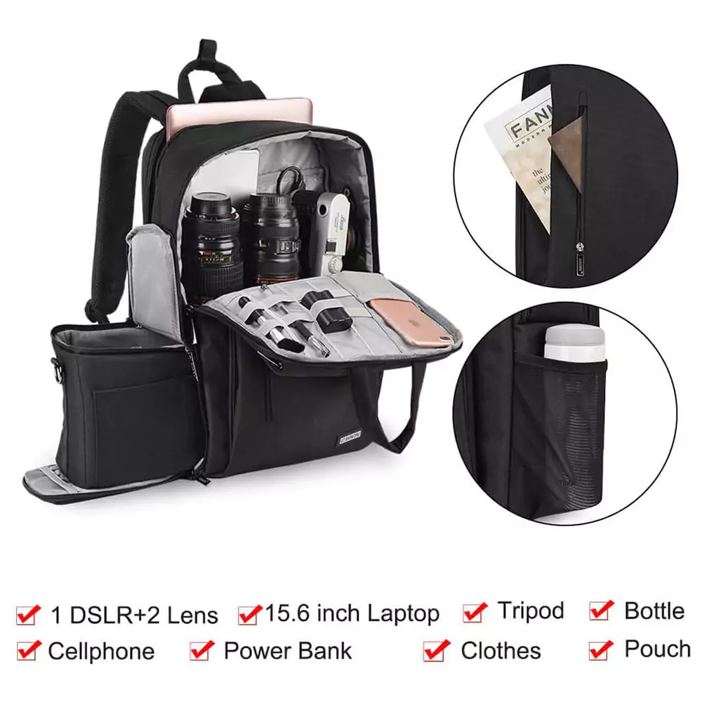 کوله پشتی Caden L5-3 Backpack همچنین دارای یک بخش مخصوص برای لپتاپ است که میتواند لپتاپهایی تا اندازه 15.6 اینچ را در خود جای دهد. طراحی ارگونومیک، بندهای شانهای قابل تنظیم و سیستم تقسیم فشار بر روی پشت، راحتی زیادی را در حمل طولانیمدت به ارمغان میآورد.