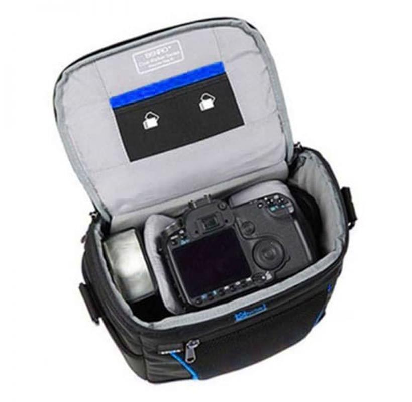 ابعاد داخلی این کیف ۱۱×۱۹×۲۲سانتی متر است و به راحتی می توانید یک دوربین عکاسی حرفه ای و یک لنز را در حالت متصل به همدیگر مورد استفاده قرار داد. ضمن اینکه در کنار بدنه دوربین و لنز هم می توانید وسایل اضافی را نیز قرار داد. آستر داخلی این کیف بسیار مناسب است و ضربه گیرهای خوبی دارد و نظر کاربر را در زمینه امنیت دوربین بسیار تأمین می کند.