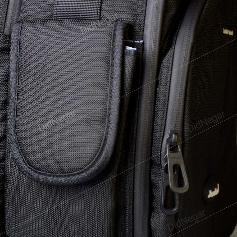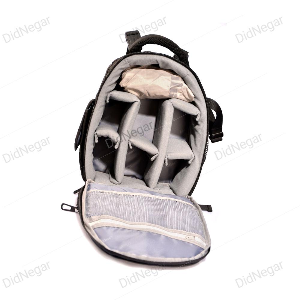اطراف این کیف نیز محفظه هایی مخصوص تبلت، کارت های حافظه، باتری، شارژر و دیگر لوازم جانبی طراحی شده است که ویژگی های یک کیف دوربین مناسب را از آن خود می کند.