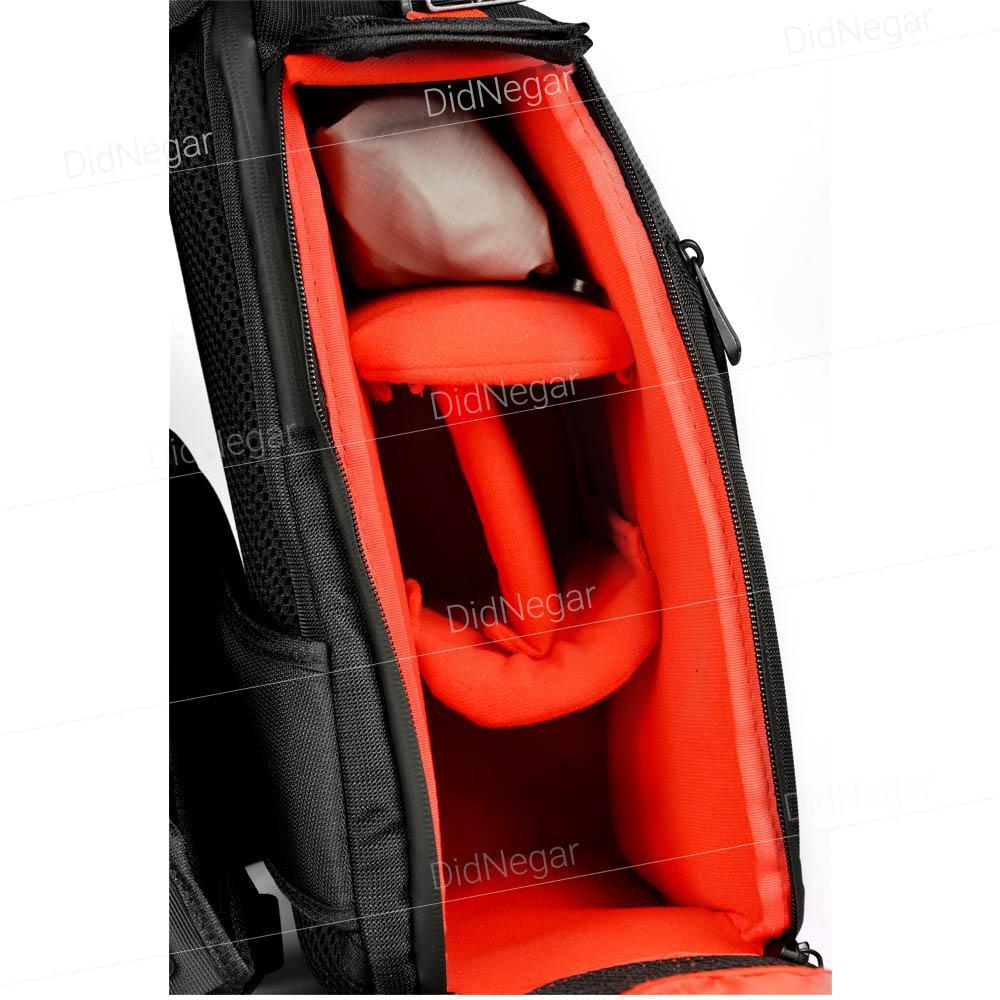 کیف تک بند جیلیوت Hero 0675 از جمله کیف هایی است که با ابعاد ۱۲ * ۲۴ * ۳۴ سانتیمتر بسیار جادار و سبک است و نیز از مقاومت بسیار بالایی برخوردار است. همچنین ظاهر شیک و جذاب آن نظر بسیاری از عکاسان را به خود جلب می کند. درون این کیف شما می توانید یک دوربین DSLR و سه عدد لنز قرار دهید. البته جداکننده ( دیوایدر Divider ) های قابل تعویض و جابجایی که درون محفظه ی اصلی این کیف قرار دارد، به شما امکان می دهد که با طراحی دلخواه خود، لوازم بیشتری نیز جای دهید. علاوه بر این، جیلیوت Hero 0675 دارای محفظه های مخصوصی است که برای تبلت، کارت حافظه، باتری، شارژر و… مناسب است.
