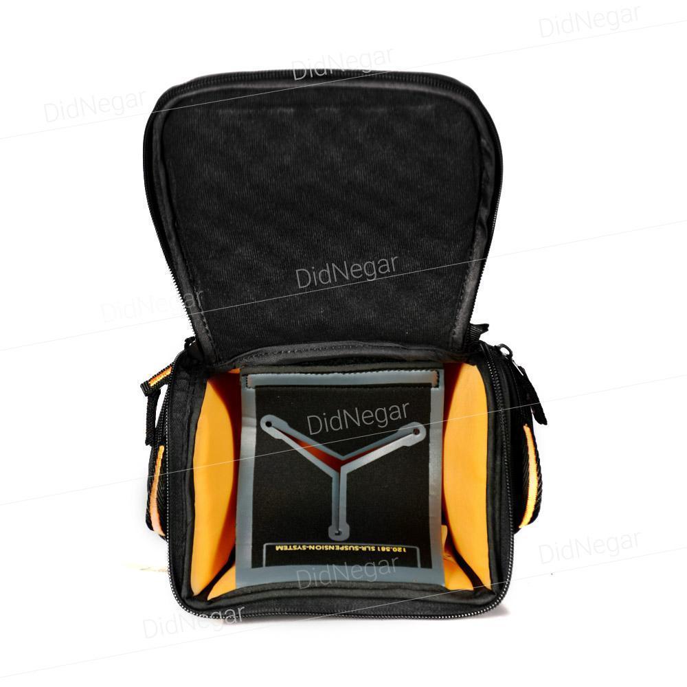 این کیف از جنس برزنت با دوام است که دوربین و لنز شما را در برابر آب و گرد و غبار محافظت می کند. همچنین، ضربه گیر های مخصوصی که درون این کیف به کار برده شده، امنیت دوربین و لنز شما را تضمین می کند.