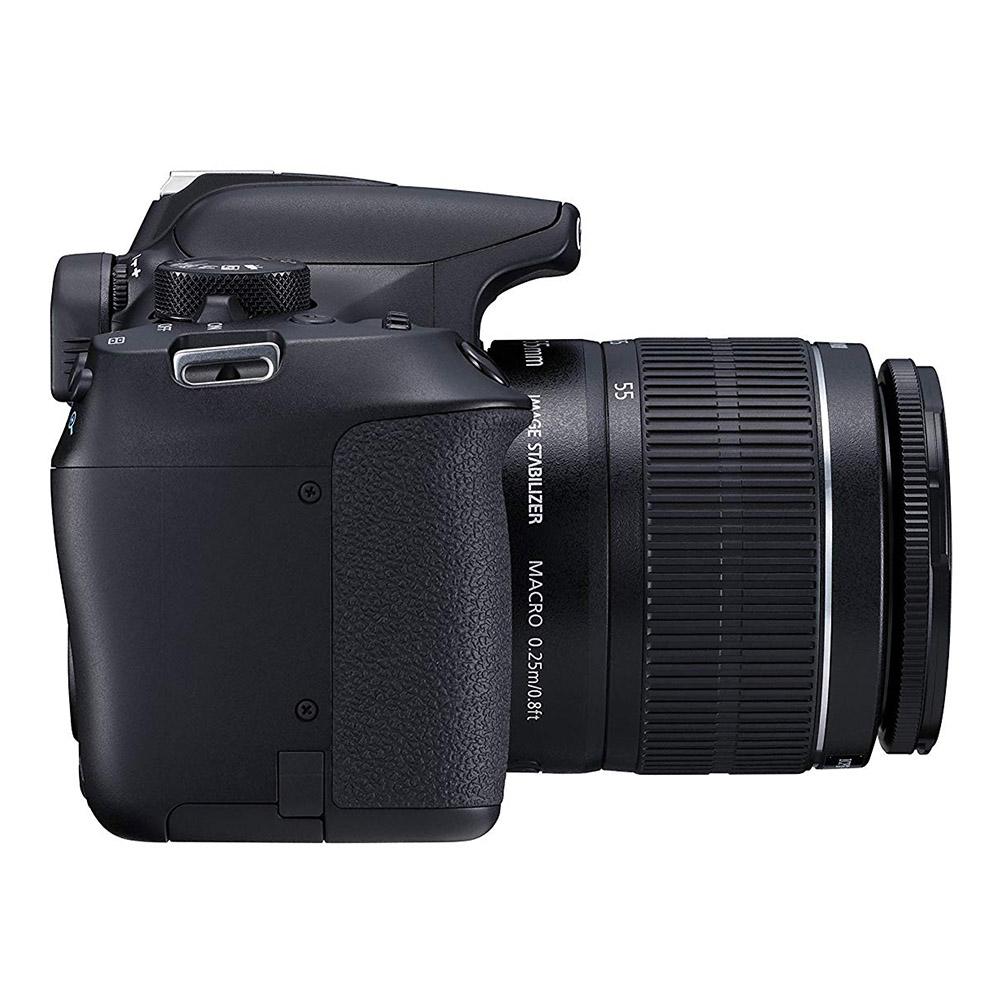 لنز دوربین همراه این دوربین دارای حداقل فاصله کانونی 18 و حداکثر 55 میلیمتر است که دارای گیمبال دو محوره ( افقی و عمودی ) می باشد؛ وجود این قابلیت باعث می شود که درصدی از لرزش های دست گرفته شده و عکس های شفاف تری ثبت شود. لنز ارائه شده بر روی این کیت، مدل EF-S 18-55mm f/3.5-5.6 IS II است.