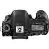 دوربین عکاسی 80D از بالا دقیقا مانند 70D به نظر میآید. در قسمت چپ دوربین Mode dial ( چرخ دنده بالای بدنه دوربین برای حالت ها) قرار دارد که دارای یک مکانیزم قفل، برای جلوگیری از تغییر در تکانهای ناگهانی است. در قسمت راست دوربین، در امتداد نمایشگر، دسترسی مستقیم به حالتهای فوکوس خودکار، Drive (مود های عکاسی پیاپی)، ایزو و نورسنجی قرار دارد. هیچ یک از این دکمهها قابل تغییر نیستند، اما با توجه به تکاملی که دوربین های سری EOS DSLR در سالهای اخیر داشتهاند، چنین چیزی قابل پیشبینی نبوده است. در قسمت راست نیز، دکمه نورسنجی، دکمه ی روشنایی پنل LCD وجود دارد.