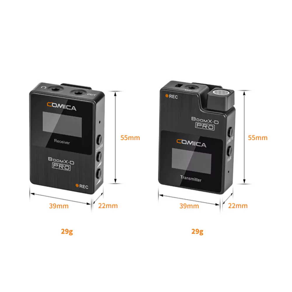 میکروفون کامیکا BoomX-D PRO D1 دارای یک فرستنده و یک گیرنده است که از طریق اتصال بیسیم و با فرکانس ۲.۴ گیگاهرتز ارتباط برقرار میکنند. این سیستم قابلیت انتقال صدا با کیفیت بالا و قدرت انتقال 10dBm+ را دارا است. همچنین، برد دستگاه تا 100 متر است، که آن را برای استفاده در فضاهای باز و بزرگ مناسب میکند.