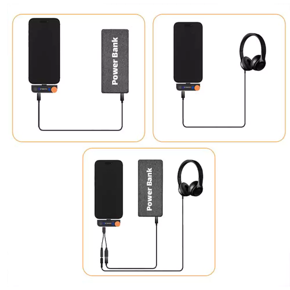 هدفون و شارژر: اگر قصد دارید بهطور همزمان از هدفون برای مانیتورینگ صدا و از کابل شارژ برای شارژ میکروفون خود استفاده کنید، این مبدل گزینهای بسیار مناسب خواهد بود.