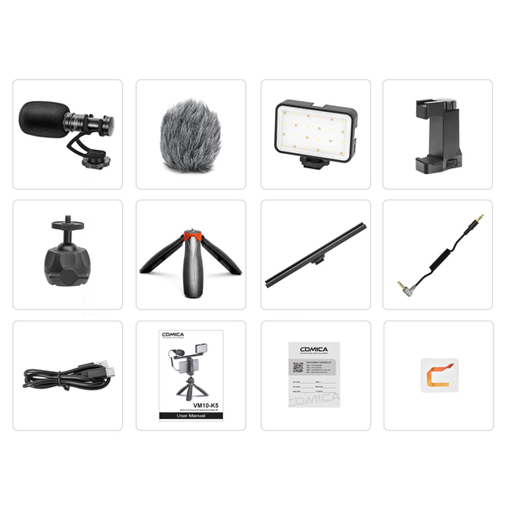 Comica CVM VM10 K5 mobile phone holder kit with light and microphone