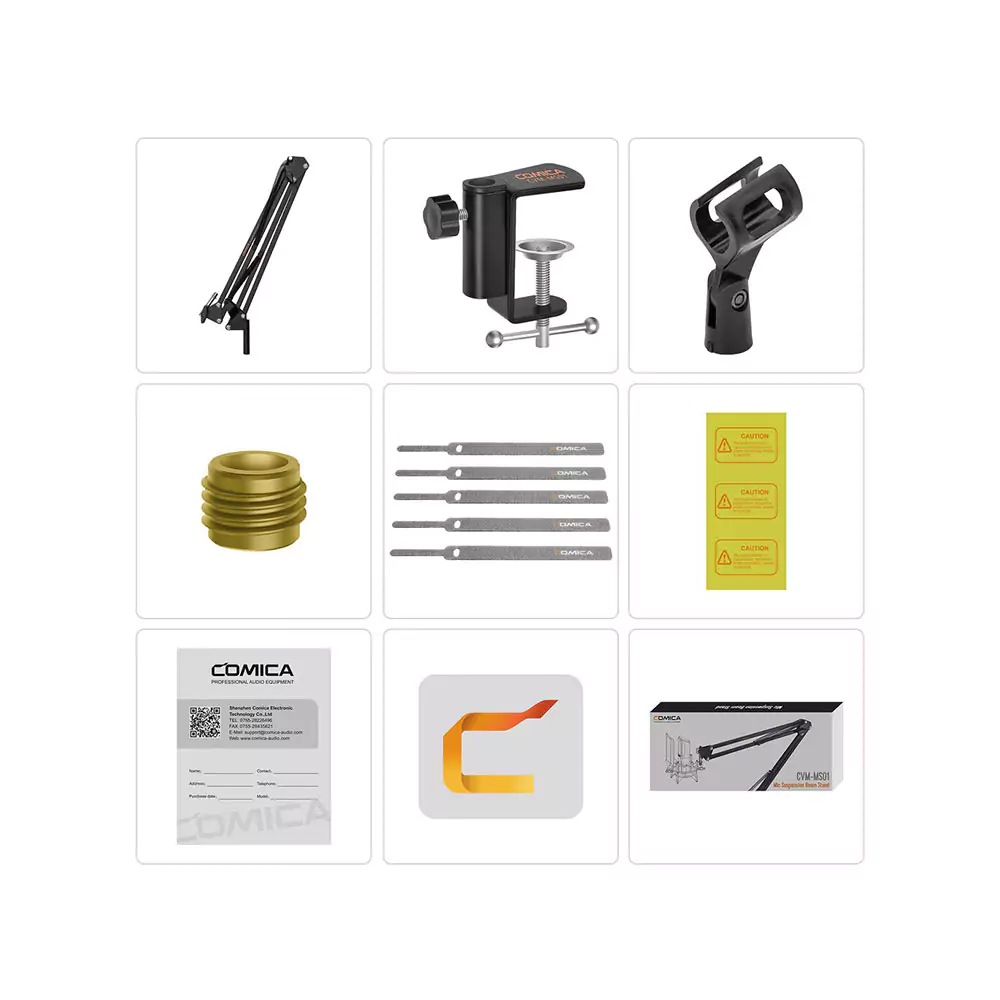 پایه میکروفون کامیکا Comica CVM-MS01، یک انتخاب عالی برای کسانی است که به دنبال نصب یک میکروفون استودیویی با قابلیت تنظیم آسان و قابل حمل روی میز خود هستند. این پایه طراحی منحصر به فردی دارد که اجازه میدهد میکروفون در موقعیتهای مختلف و در فضاهای کوچک به راحتی نصب شود. از آنجا که این محصول برای استفاده در استودیوهای پادکست، برودکست، رادیویی و فضای محدود بسیار مناسب است، محبوبیت زیادی در بین کاربران حرفهای دارد.