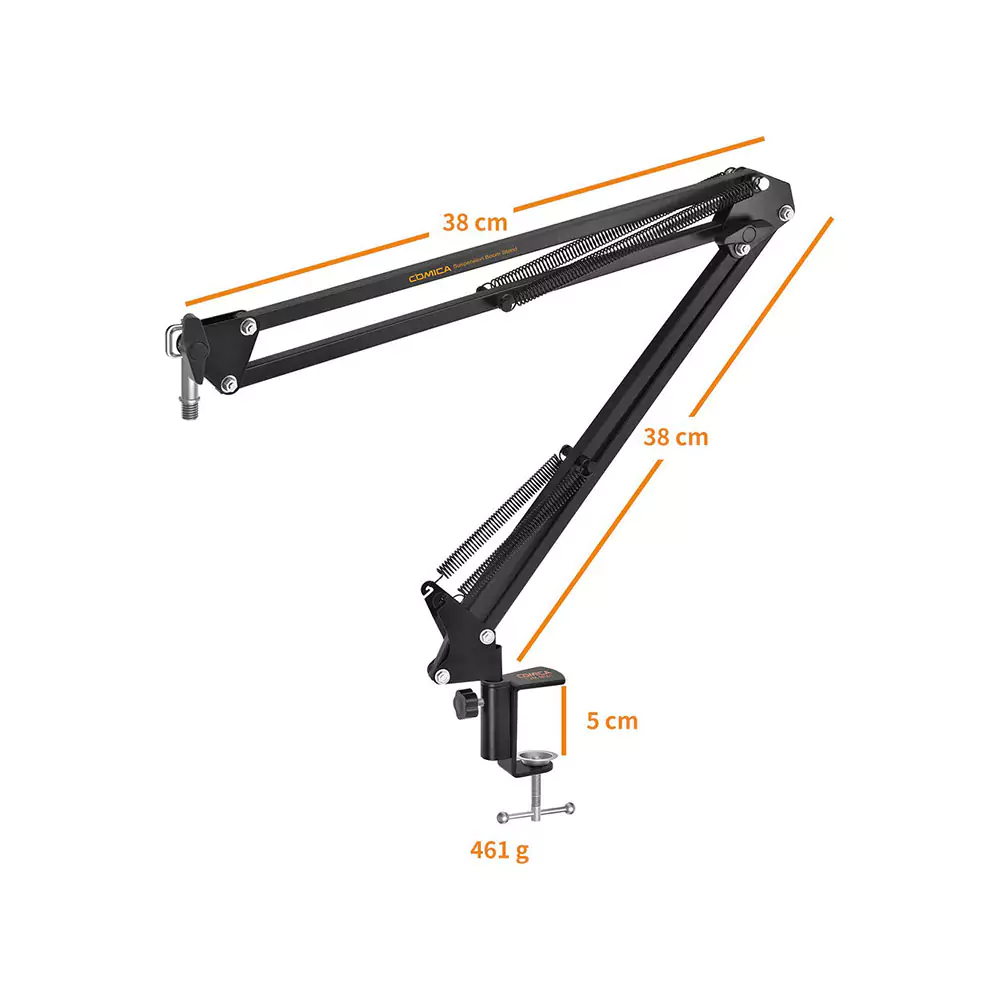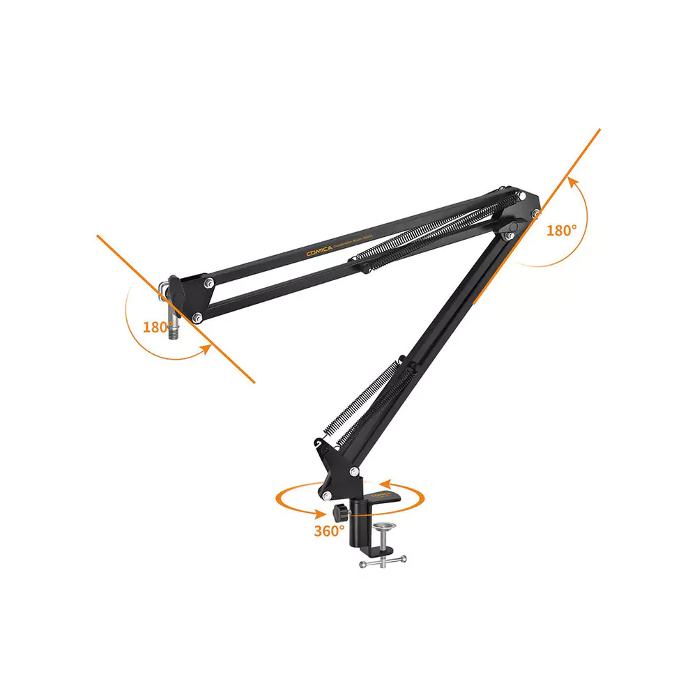 این لوازم جانبی میکروفون از جنس فلز با کیفیت بالا ساخته شده و دارای بازوهای مستقل است که میتواند تا ۱.۵ کیلوگرم وزن را تحمل کند. با استفاده از این پایه میتوانید میکروفون خود را در هر زاویهای تنظیم کنید و از آن برای ضبط صدا به راحتی بهره ببرید. طراحی آن به گونهای است که میتوانید در مواقع عدم استفاده، پایه را جمع کرده و میکروفون را به گوشه میز منتقل کنید.