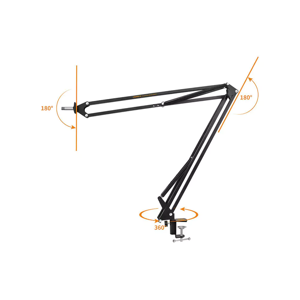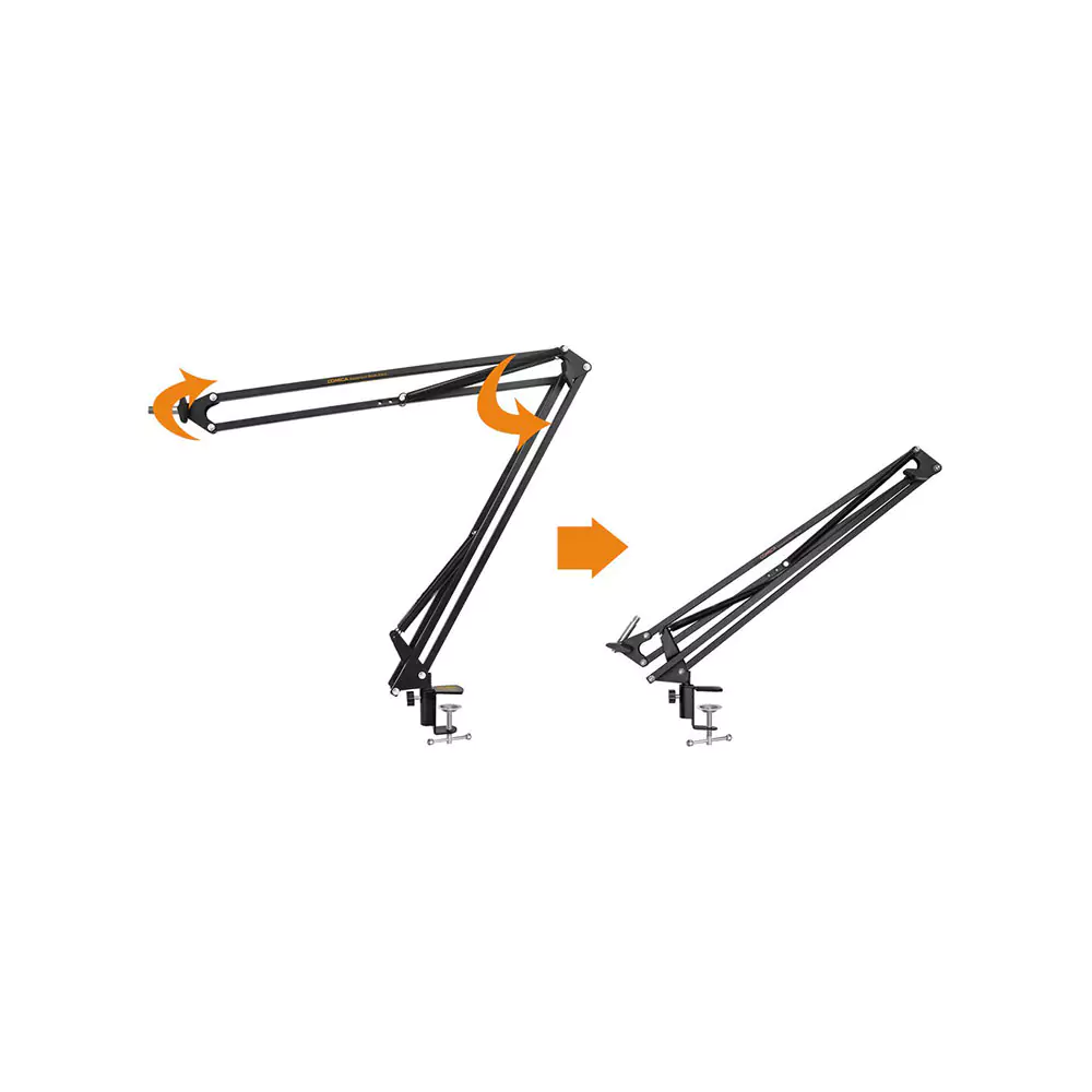 قابلیت تنظیم دقیق: دو بازوی مستقل با قابلیت تنظیم افقی و عمودی، این امکان را فراهم میکند که میکروفون را در هر زاویهای قرار دهید.