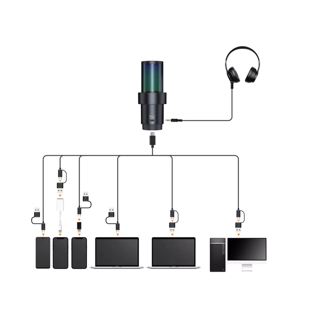 نور RGB میکروفون نیز در چندین حالت مختلف قابل تنظیم است و میتواند به ویدیوهای شما جلوهای خاص و جذاب بدهد. این ویژگی ظاهر میکروفون را زیباتر میکند.
