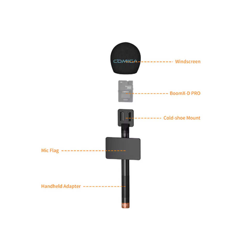 دسته میکروفون کامیکا HR-WM دارای بدنهای تمام فلزی از آلومینیوم با وزنی کمتر از 200 گرم است که به دلیل طراحی ویژه خود، از لغزش و سر خوردن میکروفون جلوگیری میکند. این دسته یک شیار در قسمت بالایی خود دارد که به کاربران امکان اتصال انواع میکروفونهای بیسیم موجود در بازار، مانند مدلهای Rode Wireless Go، DJI، Rode Wireless Me، و BOOMX-D PRO را میدهد. همچنین، این محصول به همراه یک فوم بادگیر عرضه میشود که از میکروفون در برابر باد و رطوبت محافظت میکند و کیفیت صدای ضبطشده را بهبود میبخشد. یکی از ویژگیهای جالب این دسته، وجود پرچم پلاستیکی برای اضافه کردن لوگو یا برچسب است که به کاربران اجازه میدهد تا برند خود را بر روی آن قرار دهند.