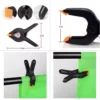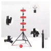 در بستهبندی این پایه فون، ۴ عدد گیره نگهدارنده نیز قرار دارد که به راحتی بکگراند را محکم روی میله نگه میدارند. تمامی قطعات بهراحتی باز و بسته میشوند و قابل حمل هستند.