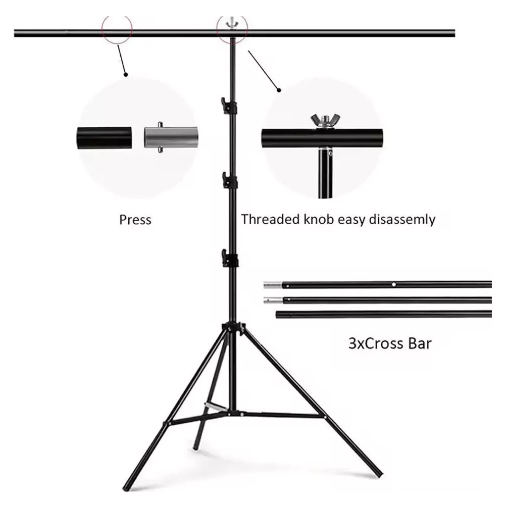 پایه T شکل دیاموند دارای دو عدد سهپایه مستحکم است که حداکثر تا ارتفاع 260 سانتیمتر بالا میروند. بین این دو سهپایه، میلهای افقی به شکل حرف T قرار میگیرد که طول آن تا 200 سانتیمتر قابل تنظیم است. این ترکیب، چارچوبی مناسب برای نگهداری فونهای پارچهای، کاغذی یا وینیل فراهم میکند.