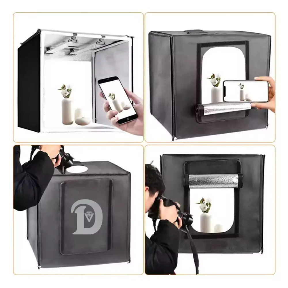 مزیت اصلی این خیمه، حمل آسان و طراحی جمعوجور آن است. بدون نیاز به فضای زیاد، یک استودیوی شخصی خواهید داشت. نور LED داخلی هم بدون تولید گرمای زیاد، دقت رنگ را در تصاویر حفظ میکند. این ویژگی بهخصوص برای کسانی که در زمینه فروش آنلاین محصولات تزئینی فعالیت میکنند، حیاتی است.
