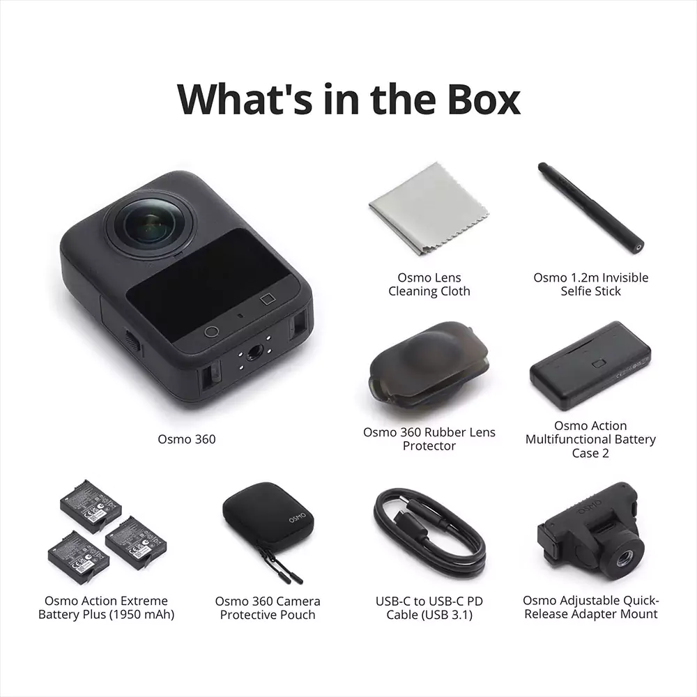 دوربین Osmo 360 Adventure Combo با استاندارد IP68 ساخته شده است، یعنی میتوانید تا عمق 10 متر زیر آب از آن استفاده کنید بدون آنکه آسیبی ببیند. همچنین در دمای -20 درجه سانتیگراد تا +45 درجه سانتیگراد عملکرد پایداری دارد. بنابراین چه در اسکی روی برف باشید، چه در غواصی یا کویرگردی، این دوربین همراه مطمئن شماست.