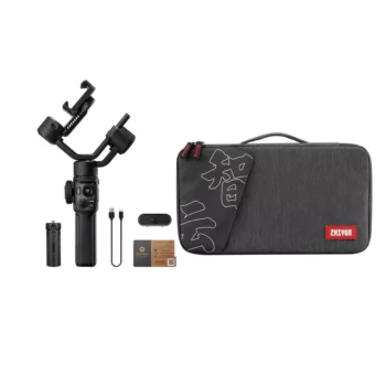 پایین گیمبال، یک شیار 1/4”-20 قرار دارد که برای مانت روی سه پایه گریپ یا لوازم جانبی دیگر، مناسب است. یک کیف و یک بند مچی نیز به همراه گیمبال به شما داده میشود.