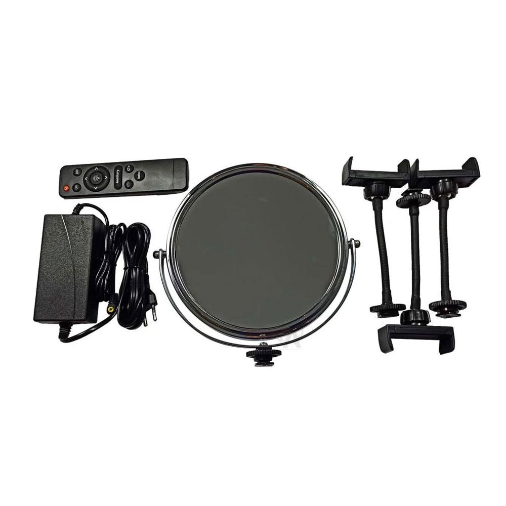 تمایز دیگر این محصول امکان نصب همزمان سه گوشی هوشمند میباشد و همچنین میتوان آیینه را نیز در صورت تمایل و نیاز به جای این گوشیها نصب نمود. بنابراین در این رینگ لایت امکان نصب یک وسیله بیشتر نسبت به سایر رینگها با برندهای دیگر وجود دارد. پورت USB هم برای تامین شارژ گوشیهای هوشمند مورد استفاده در پشت دستگاه حلقه نورانی در نظر گرفته شده است.