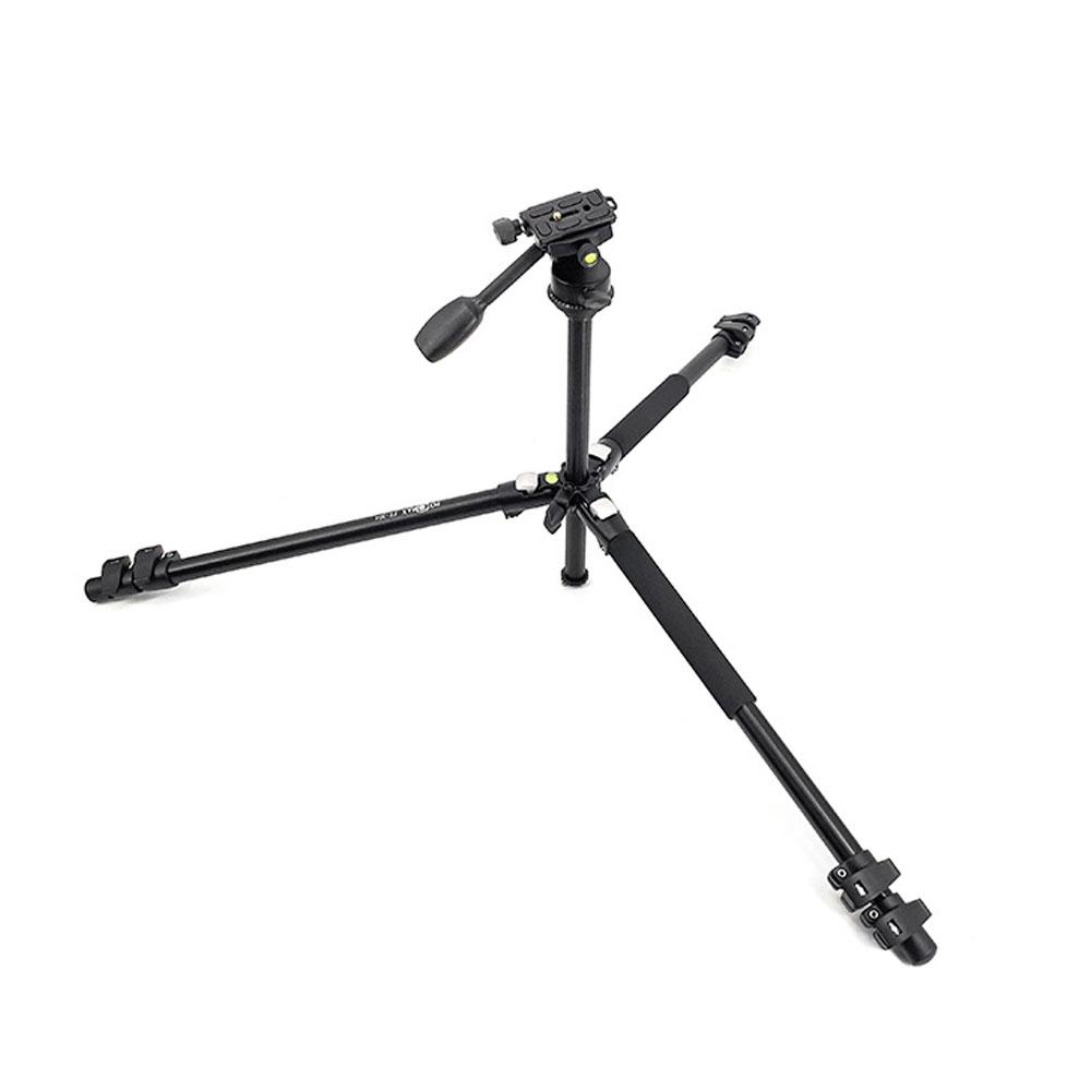 سر این سه پایه از نوع پن هد است. پن هد قابلیت چرخش افقی 360 دارد و از نظر عمودی نیز تا 90 درجه میچرخد. به این صورت میتوانید در عکاسی به زاویه دلخواه برسید و در فیلمبرداری به راحتی هد را حرکت داده و سوژه را در صحنه دنبال کنید. یک دسته نیز برای این پن هد در نظر گرفته شده است که تنظیم زاویه آن آسانتر باشد. با این زاویه چرخش هیچ چیز از چشمان شما دور نمیماند.