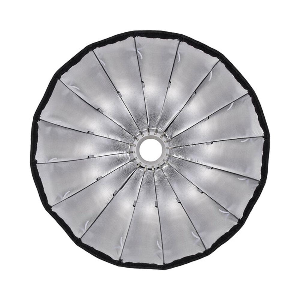 اکتا باکس پارابولیک گودکس Godox QR-P90 Parabolic Softbox (90cm) مجهز به 16 میله فایبر گلاس مستحکم بوده که شکل دایرهای به این اکتا باکس داده است که سبب میشود پخش نور در آن به صورت یکنواخت انجام شود.