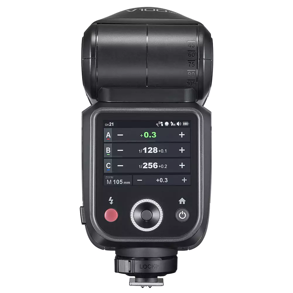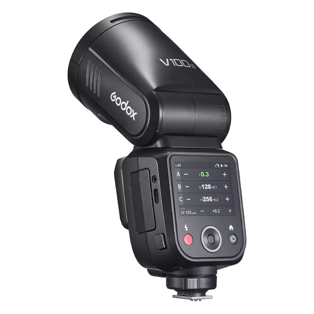 فلاش گودوکس V100 برای سونی با توان خروجی 100 وات و محدوده توان 1/1 تا 1/256 قابلیت تنظیم نور دقیق را به عکاسان میدهد. این فلاش از سیستم Sony ADI / P-TTL پشتیبانی میکند و به شما امکان میدهد تا نوردهی را به صورت خودکار تنظیم کنید. کنترل زوم خودکار با محدوده زوم 28-105 میلیمتر، به شما این امکان را میدهد که زاویه تابش نور را مطابق با نیاز خود تنظیم کنید. هد فلاش این مدل قابلیت چرخش 360 درجه و شیب -7 تا 120 درجه را دارد که انعطافپذیری عالی برای تنظیمات مختلف را فراهم میکند. همچنین صفحه نمایش لمسی از دیگر ویژگیهای این فلاش است که کاربری راحت و سریعی را به ارمغان میآورد.