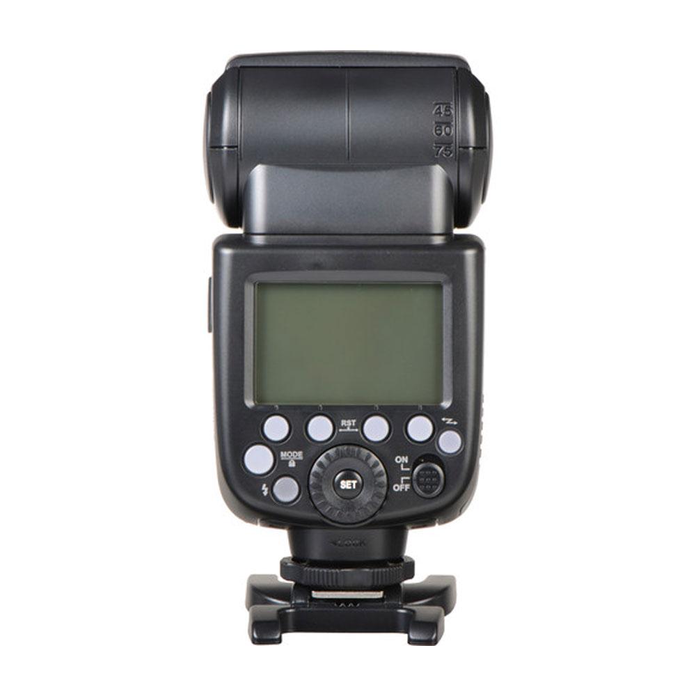 روی بدنه فلاش، یک پنل LCD تعبیه شده که تنظیمات را به صورت واضح و شفاف به شما نشان میدهد. شما میتوانید از دکمههای متعدد روی بدنه، برای تغییر تنظیمات استفاده کنید. چرخ قرار گرفته در میان دکمهها نیز، انتخاب تنظیمات مختلف را ممکن میکند.