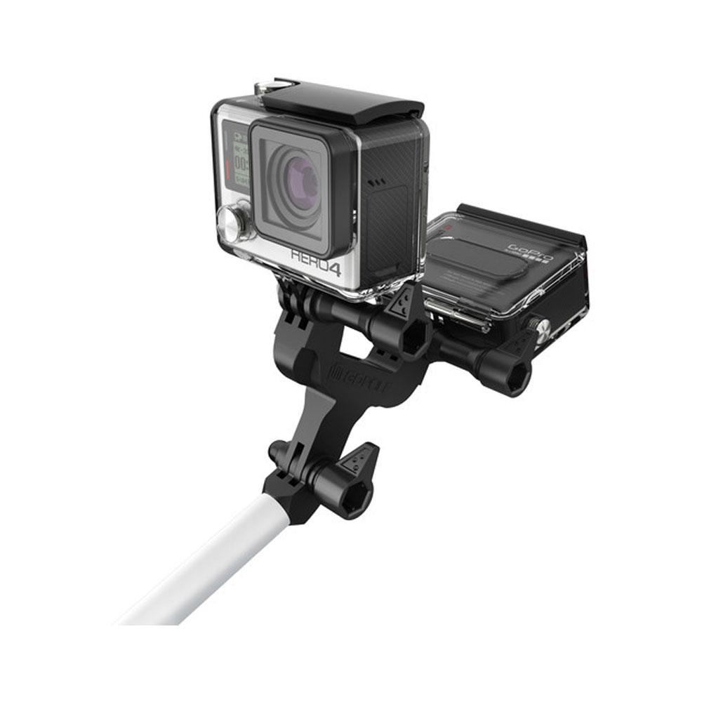 به کمک مانت اتصال گوپول مناسب دوربین گوپرو می توانید دو دوربین اکشن را با هم استفاده کنید. با به کارگیری این مونوپاد با یک دوربین فیلم برداری کنید و با دوربین دیگر عکس بگیرید. مونوپاد دوگانه گوپول برای زمان هایی کاربرد دارد که می خواهید با دو دوربین از فریم های متفاوت عکس بگیرید و یا قصد اعمال تنظیمات مختلف دارید. این مونوپاد از جنس پلاستیک است و دارای دو چنگک برای اتصال دو دوربین است. یک چنگک در زیر نیز قرار دارد که برای ضمیمه مونوپاد DualCam Adapter به گریپ، مونوپاد سلفی و دیگر تجهیزات مورد استفاده قرار می گیرد.