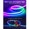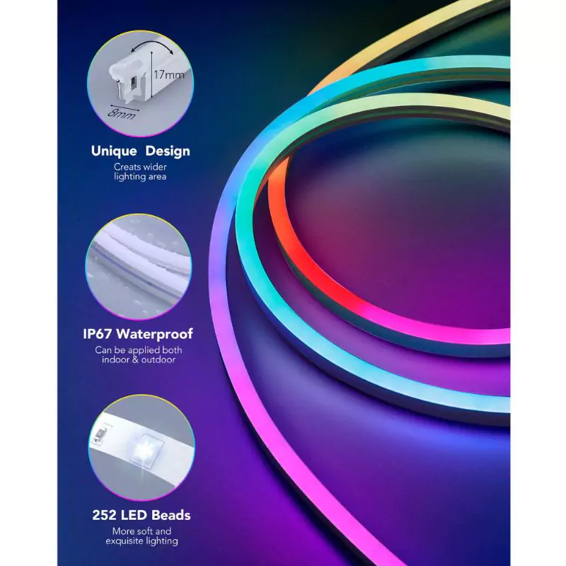ریسه گووی H61A0 دارای طول 3 متر بوده و با طراحی انعطافپذیر خود امکان نصب آسان در فضاهای مختلف را فراهم میکند. این ریسه با فناوری RGBIC قادر است رنگهای متنوعی را به صورت همزمان نمایش دهد که جلوههای نوری جذاب و زنده ایجاد میکند. علاوه بر این، این محصول دارای استاندارد ضد آب IP67 است که آن را برای استفاده در محیطهای مستعد رطوبت مانند آشپزخانه یا اطراف تلویزیون مناسب میسازد. ریسه گووی H61A0 با اپلیکیشن Govee Home و دستیارهای صوتی همچون Alexa و Google Assistant سازگار است و میتوان آن را بهراحتی از طریق بلوتوث و وایفای کنترل کرد.