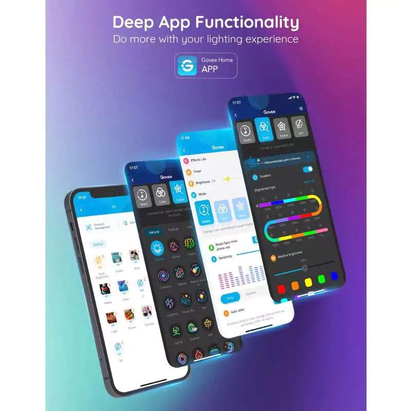 قبل از خرید ریسه هوشمند 3 متری گووی Govee H61A0، مهم است که به ابعاد فضایی که قصد نورپردازی آن را دارید توجه کنید. این ریسه برای تلویزیونهای 48 تا 55 اینچی و 65 تا 75 اینچی طراحی شده و بهترین جلوه نوری را در این بازهها ارائه میدهد. همچنین، اگر به دنبال ایجاد فضای سرگرمی با جلوههای نوری هماهنگ با موسیقی هستید، این ریسه با 11 حالت موسیقی میتواند فضای دلخواه شما را بهخوبی ایجاد کند.