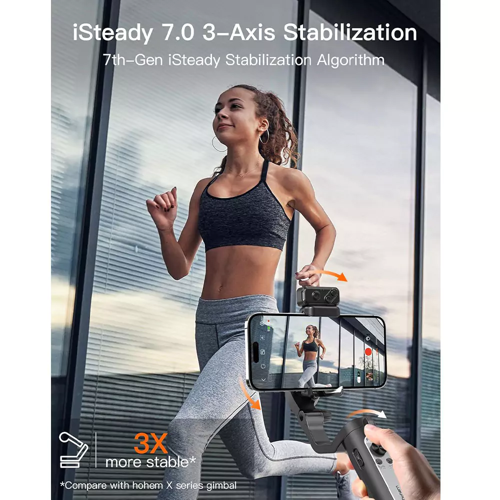 Hohem iSteady XE تنها 259 گرم وزن دارد که آن را به سبکترین گیمبال موبایلی در بازار تبدیل میکند. با وجود این وزن پایین، همچنان قادر است گوشیهایی تا وزن 281 گرم را بهراحتی تثبیت کند. این گیمبال از سیستم تثبیتسازی سهمحوره iSteady 7.0 بهره میبرد که حرکتها را نرم و بدون لرزش ضبط میکند، حتی اگر در حال دویدن یا راه رفتن سریع باشید.