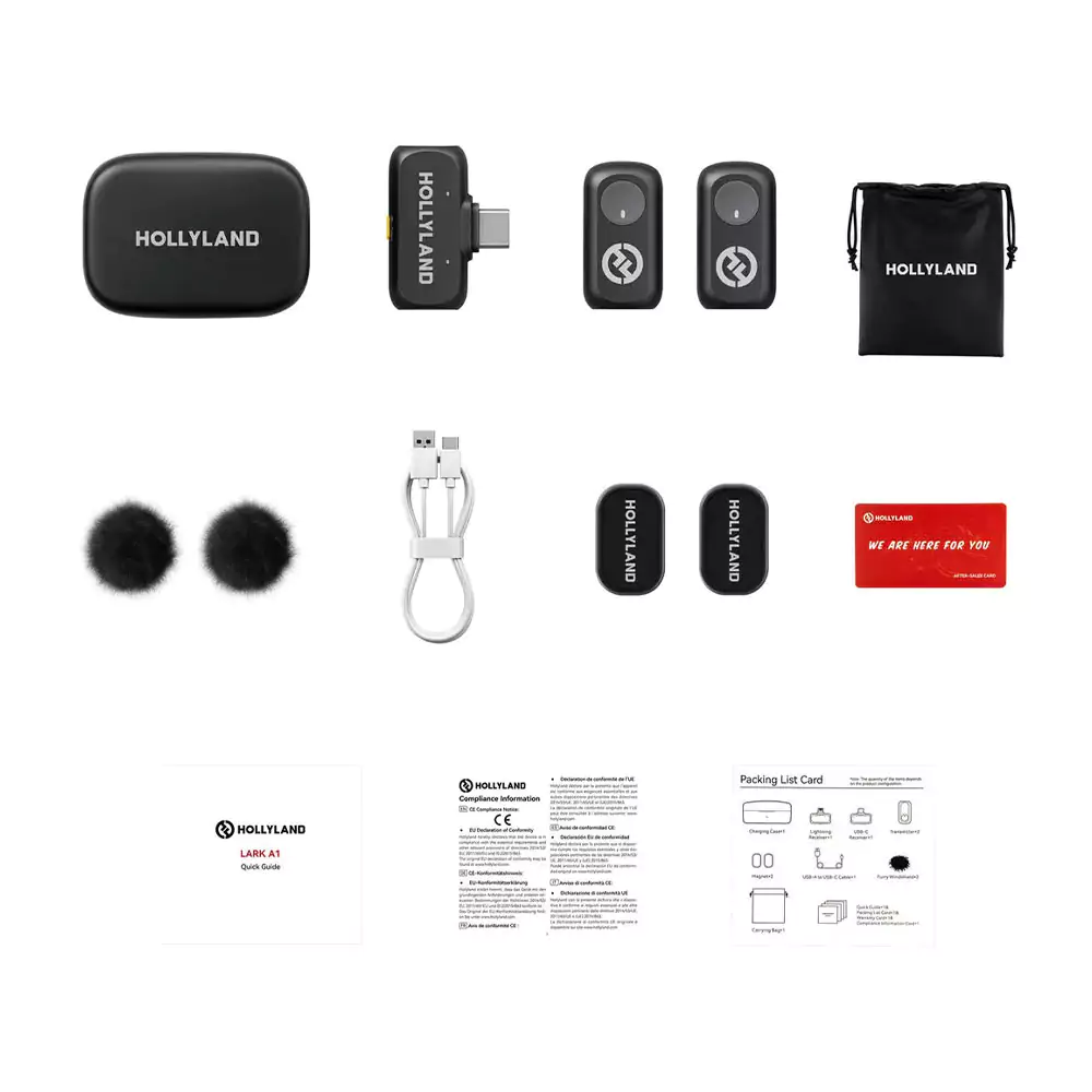 2 عددمیکروفون هالیلند دو نفره Hollyland Lark A1 Type-c با طراحی سبک، اتصال مستقیم USB-C و حذف نویز هوشمند، صدایی شفاف و حرفهای حتی در محیطهای شلوغ ضبط میکند.. با این تجهیزات صدا، حتی در محیطهای شلوغ و پر سر و صدا میتوانید صدایی شفاف و واضح ضبط کنید.