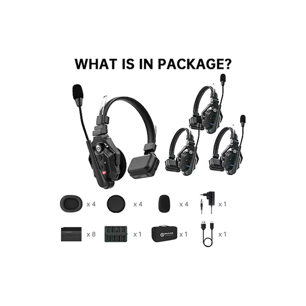 اینترکام هالیلند C1-4S یک راهکار پیشرفته و تمامدوبلکس است که با فناوری DECT صدای واضح و ارتباط راحتی را در طول روز ارائه میدهد.اینترکام بی سیم هالی لند Hollyland Solidcom C1-4S به گونهای طراحی شده که نیازی به هاب ندارد. شامل ۴ هدست یک طرفه، ۱ واحد اصلی و ۳ واحد از راه دور به همراه باتریهای قابل شارژ و یک شارژر است.