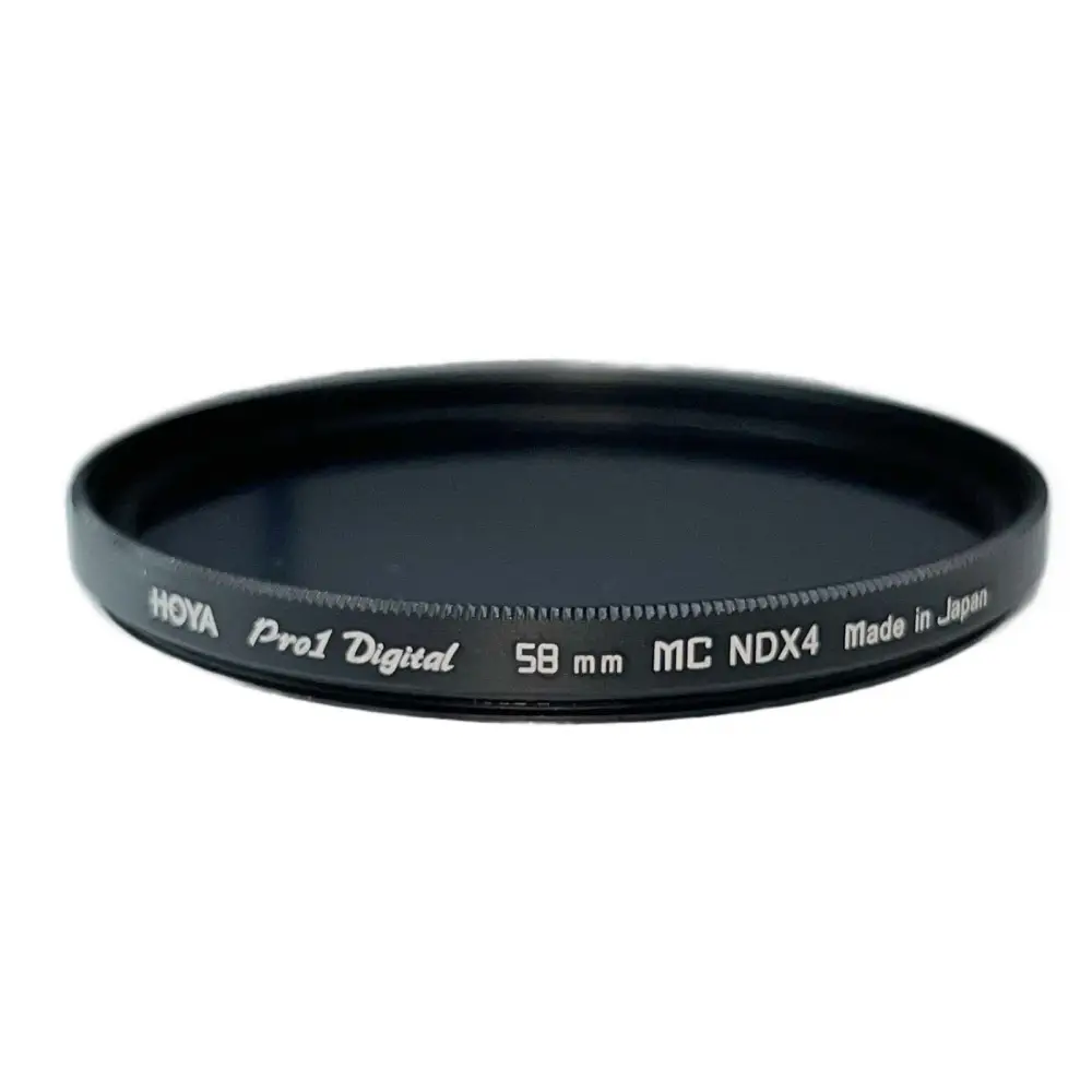 Density (ND) است که وظیفهی آن کاهش میزان نوری است که به حسگر دوربین میرسد، بدون اینکه رنگ یا کنتراست تصویر تغییر کند. عدد ۴ در این فیلتر نشاندهندهی شدت آن است و معادل کاهش حدود ۲ استاپ نور میباشد.