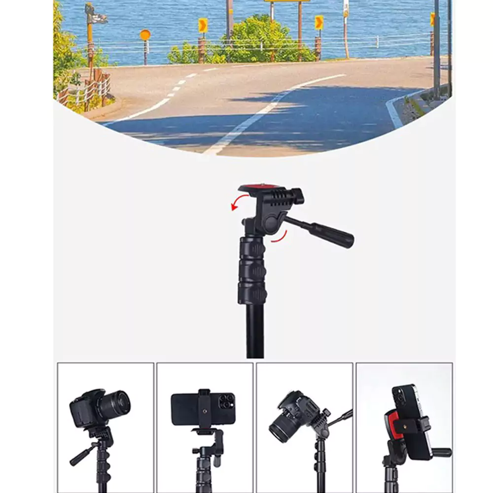 این پایه دوربین به دو مانت 360 درجه مجهز است که به شما این امکان را میدهد که دوربین یا گوشی خود را در هر زاویهای بچرخانید و از زوایای مختلف عکس بگیرید. این ویژگی بهویژه در عکاسی پانوراما و فیلمبرداری کاربردی است.